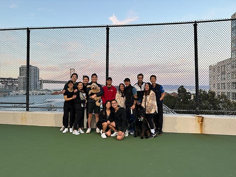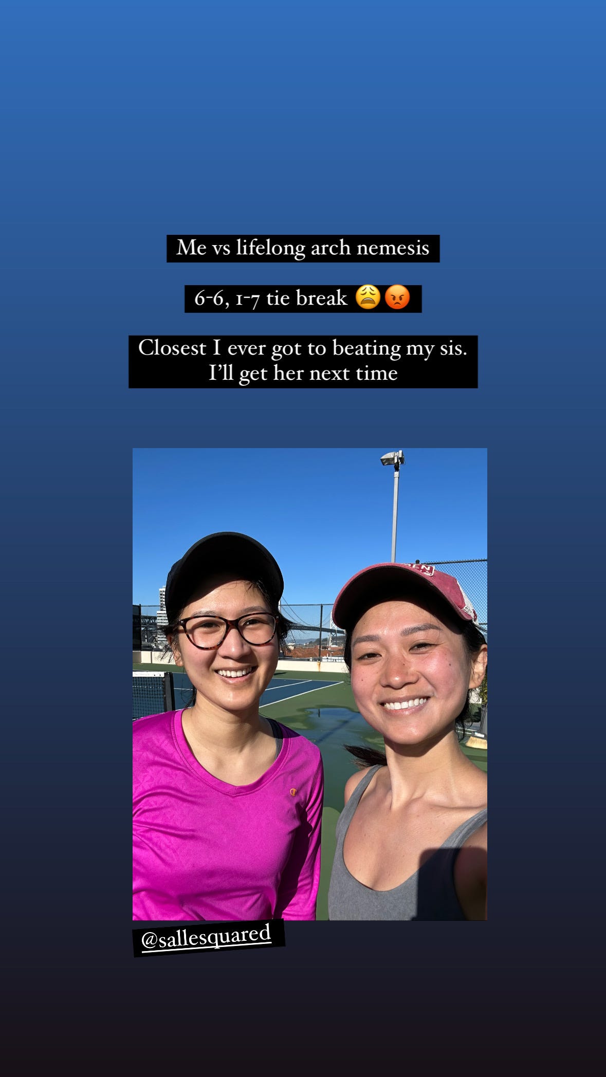 Beat Sally, Minhtri, Derek, and Andrew’s dad in a set or tiebreak (They’re all ~3.5 players)